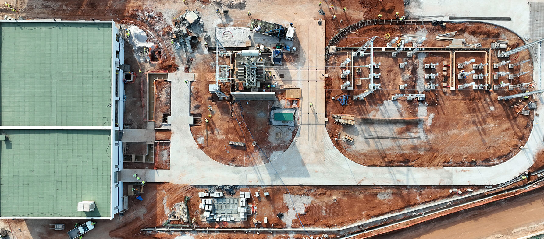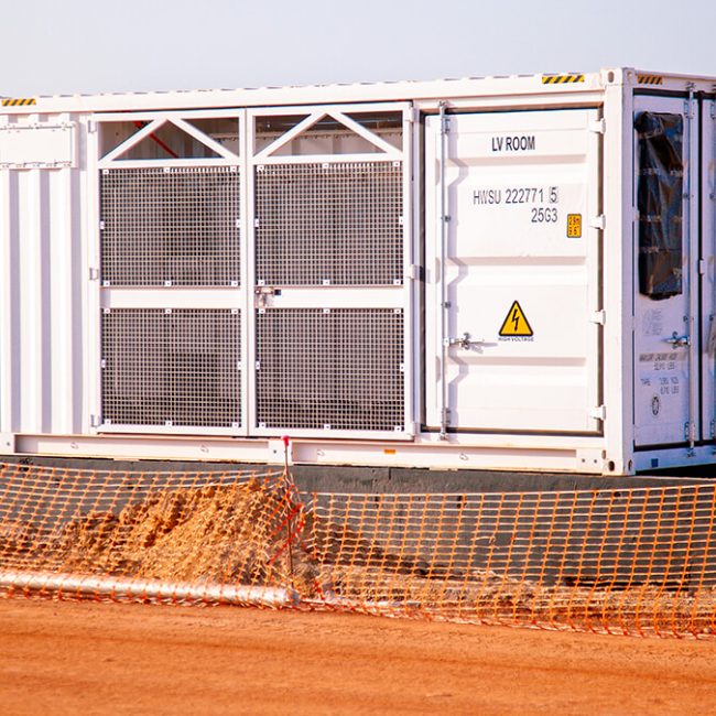 - La construction d’un « poste d’évacuation » qui assure la transformation en courant alternatif du courant continu fourni par les panneaux et de son élévation de tension de 33kV à 90KV ;