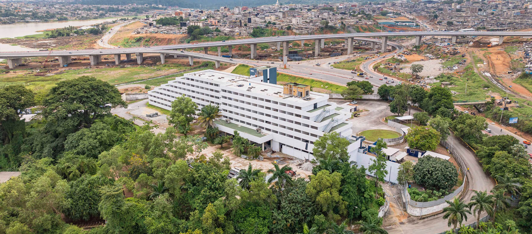 Construit entre 1979 et 1980 dans le quartier d’Attécoubé, en bordure de la lagune Ébrié, l’Hôtel Sebroko était l’un des complexes hôteliers les plus emblématiques de la Côte d’Ivoire. Classé quatre étoiles et doté de 250 chambres, il se distinguait par son architecture originale en forme de paquebot, une création attribuée à l’architecte ivoirien feu Aka-Adjo. Après avoir été une référence du paysage hôtelier ivoirien dans les années 1980, le bâtiment a ensuite été converti en siège de l’ONUCI avant d’être désaffecté. Il sert aujourd’hui de site de relogement temporaire pour les occupants de la Tour C durant sa réhabilitation. Ses locaux font l’objet d’un réaménagement destiné à adapter les espaces à un usage administratif, moderniser les installations techniques essentielles et remettre à niveau certaines infrastructures, tout en conservant l’identité architecturale singulière qui a fait la renommée de ce bâtiment iconique.